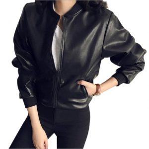 2018 Autumn PU Leather Jacket Women Black Color Washed Short Jacket O-Neck Zippers Slim Coats Ladies Solid Color